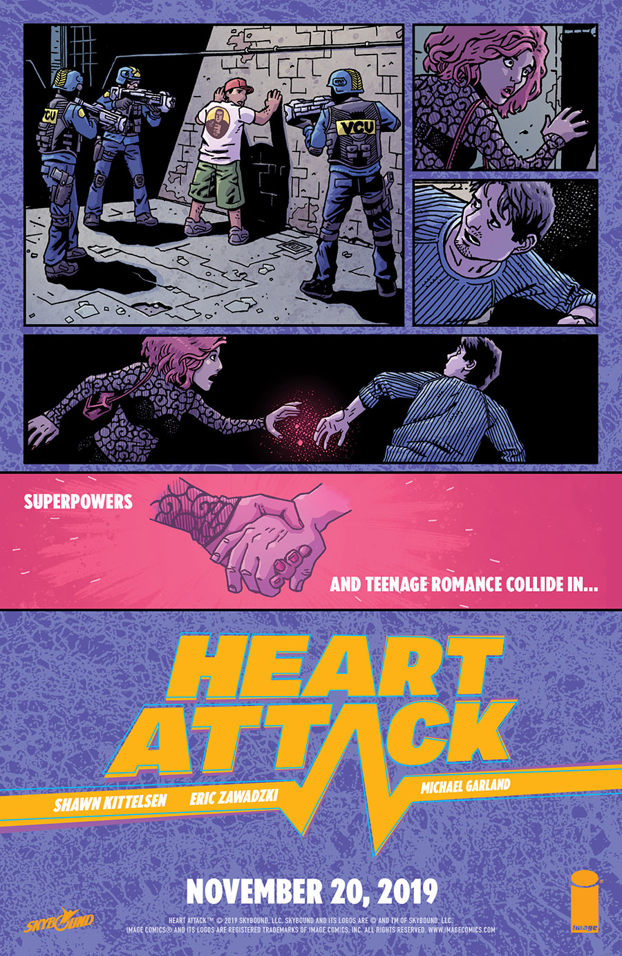 Today Skybound debuted a first look at all-new pages from Heart Attack, the new graphic novel by the acclaimed team of writer/creator Shawn Kittelsen (Injustice 2, Mortal Kombat 11), artist/creator Eric Zawadzki (House of El) and colorist Mike Spicer (Stillwater). Collecting the first six issues of the previously published comic series alongside six all-new chapters concluding the saga, the epic story will arrive in comic book stores in September 2023.